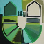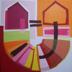 2012Het werk is een compositie van vlakken van acryl op doek die aan elkaar genaaid zijn tot één geheel.