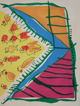 2013Compositie van aan elkaar genaaide stukjes beschilderd doek.