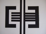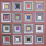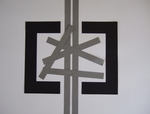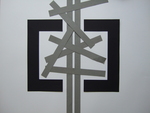 2013Het werk is opgebouwd uit verschillende lagen karton, door veel te schuiven met de kleuren gezocht naar een goed evenwichtig werk.