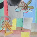 2011Een combinatie van naaimachine garen en pastelkrijt.